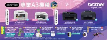 升級三年保固送好禮,再抽 DJI Air 3S 暢飛套裝,附螢幕遙控器(市價 NTD $44,990)共乙名(MFC-T920DW、DCP-T520W、DCP-T220)