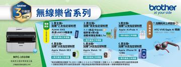 升級三年保固送好禮,再抽 HTC VIVE Eagle AI 眼鏡(市價 NTD $15,600, 不挑色)共兩名(MFC-1910W、DCP-1610W、HL-1210W)