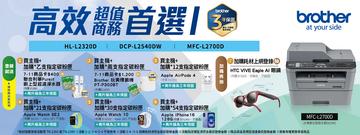 升級三年保固送好禮,再抽 HTC VIVE Eagle AI 眼鏡(市價 NTD $15,600, 不挑色)共兩名(HL-L2320D、DCP-L2540DW、MFC-L2700D)