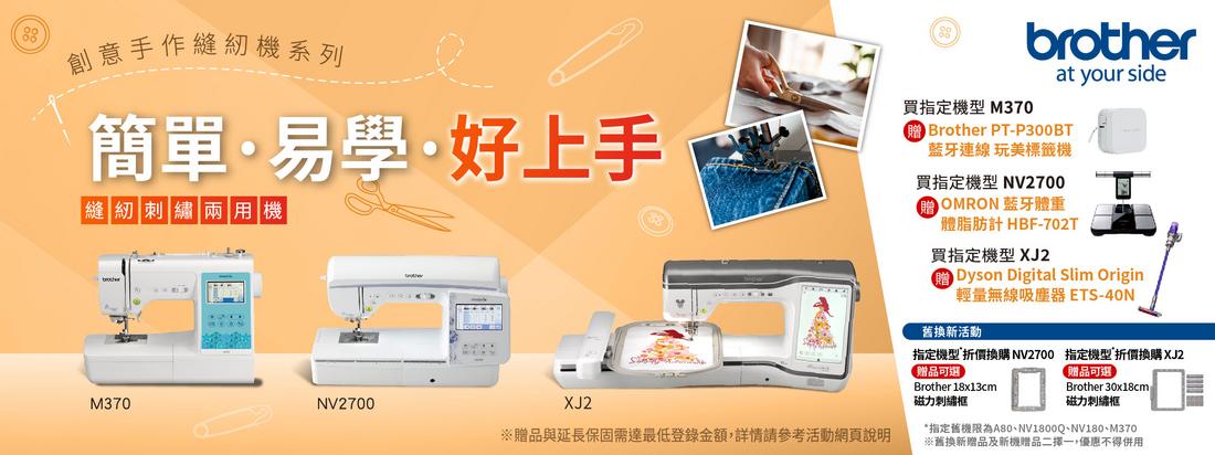 若以 A80、NV1800Q、NV180、M370 折價換購 NV2700、XJ2,贈品可改選擇 Brother 18x13cm 磁力刺繡框 (NV2700)、Brother 30x18cm 磁力刺繡框 (XJ2)