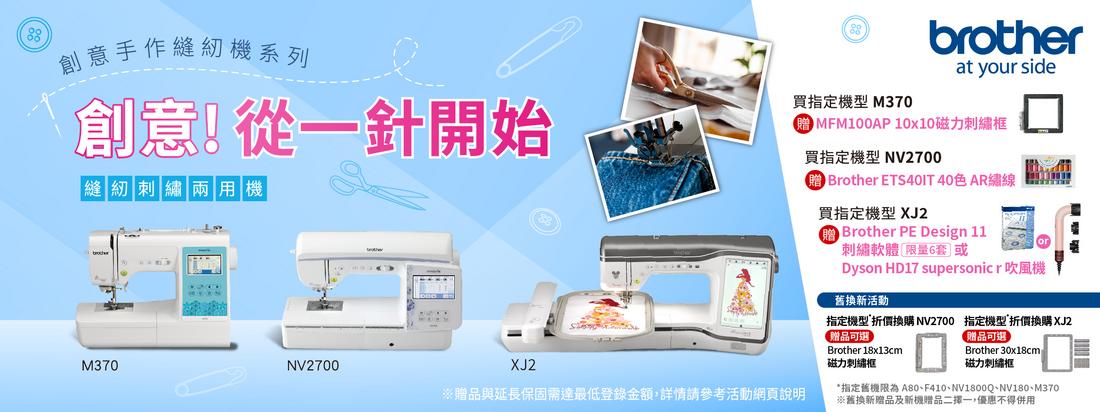 若以 A80、NV1800Q、NV180、M370 折價換購 NV2700、XJ2,贈品可改選擇 Brother 18x13cm 磁力刺繡框 (NV2700)、Brother 30x18cm 磁力刺繡框 (XJ2)