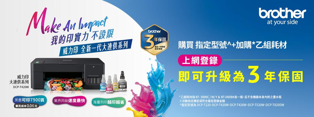 升級三年保固(DCP-T220、DCP-T420W、DCP-T426W、DCP-T520W、DCP-T820DW、MFC-T920DW)